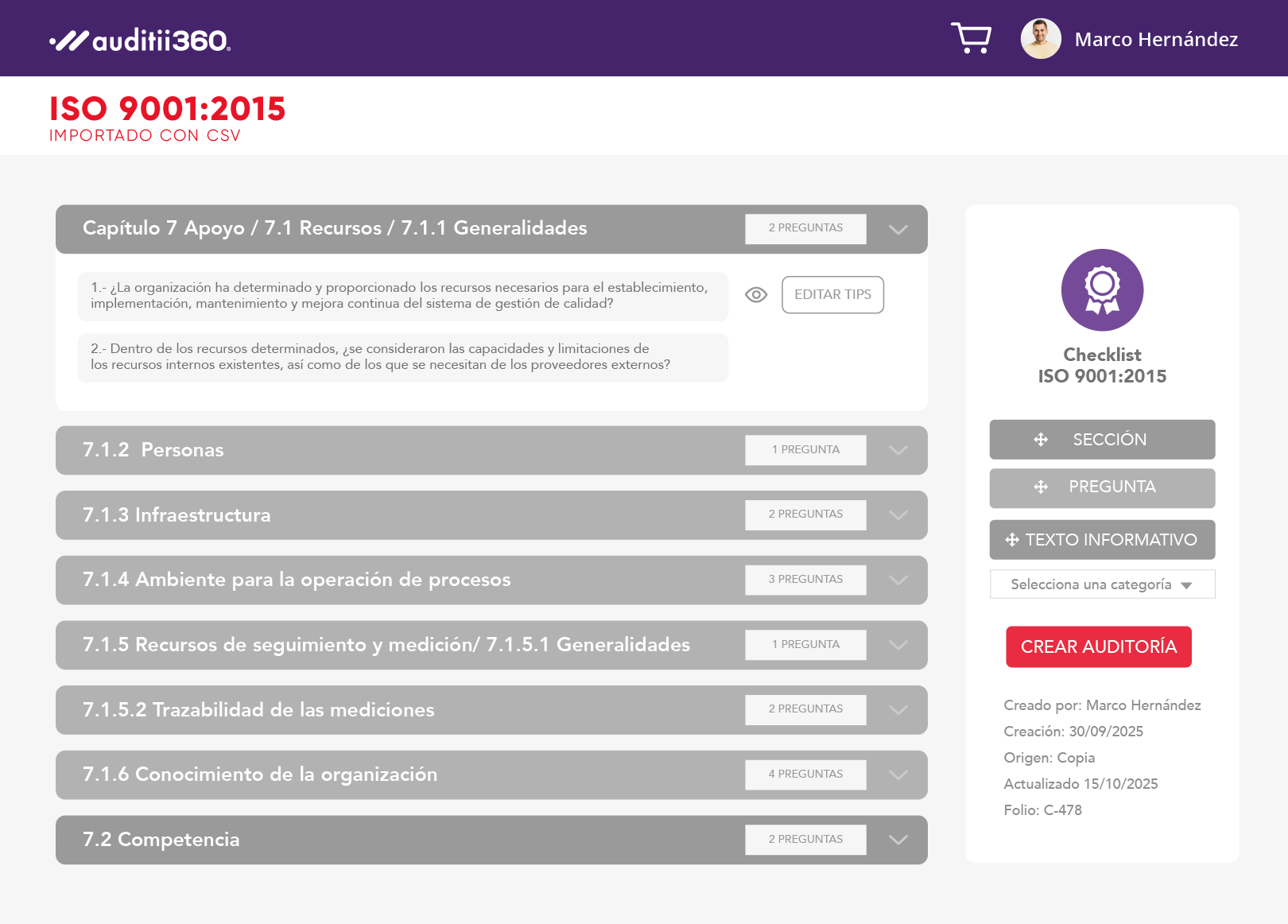 Arranca con plantillas creadas por auditores certificados y adáptalas a tu contexto.