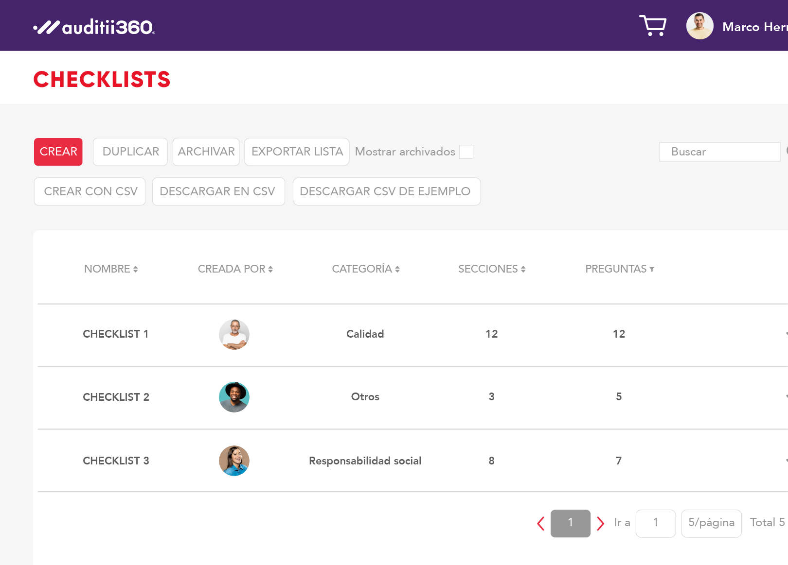 Crea, edita y configura tus checklists o personaliza alguno de los que se encuentran en nuestra biblioteca.