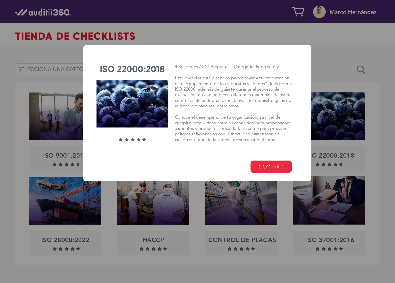 Parte de plantillas desarrolladas por auditores certificados, añade recomendaciones en contexto y guía a tu equipo para que cada inspección se ejecute de forma homogénea y sin errores.