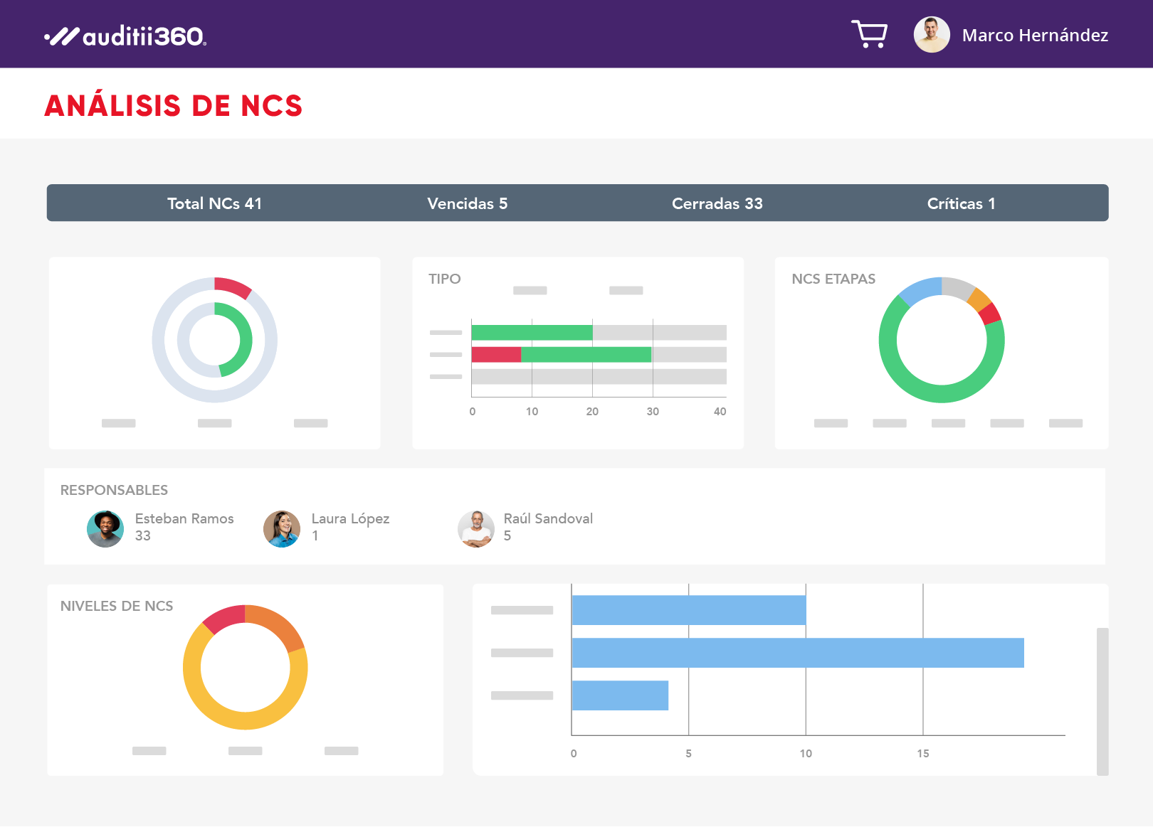 Recibe notificaciones del avance de auditores y responsables de tu No Conformidades e identifica cuando debes actuar.